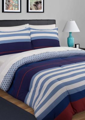 Red and navy stripes, reverse to blue and white stripes for contrast, this comforter's timeless look will prep up any bedroom.